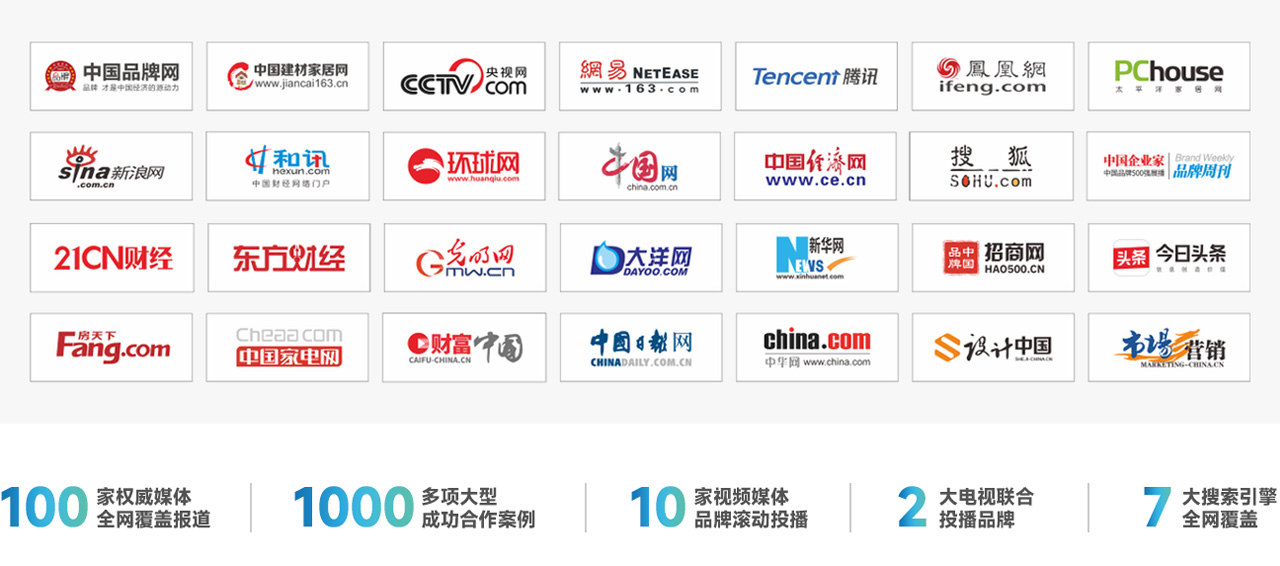 2兩大電視頻道投播 · 7大搜索引擎全面覆蓋 · 10多家視頻媒體展播 · 百家權(quán)威媒體全年報(bào)道